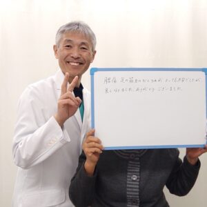 健康そのもので、家族とも外食で座敷で正座・あぐらをして食事を楽しむことができるようになり、感謝で一杯です。