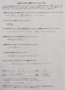 サボリ筋があるって事を知り、施術とセルフケアを教えていただき、治したいという気持ちでがんばりました。